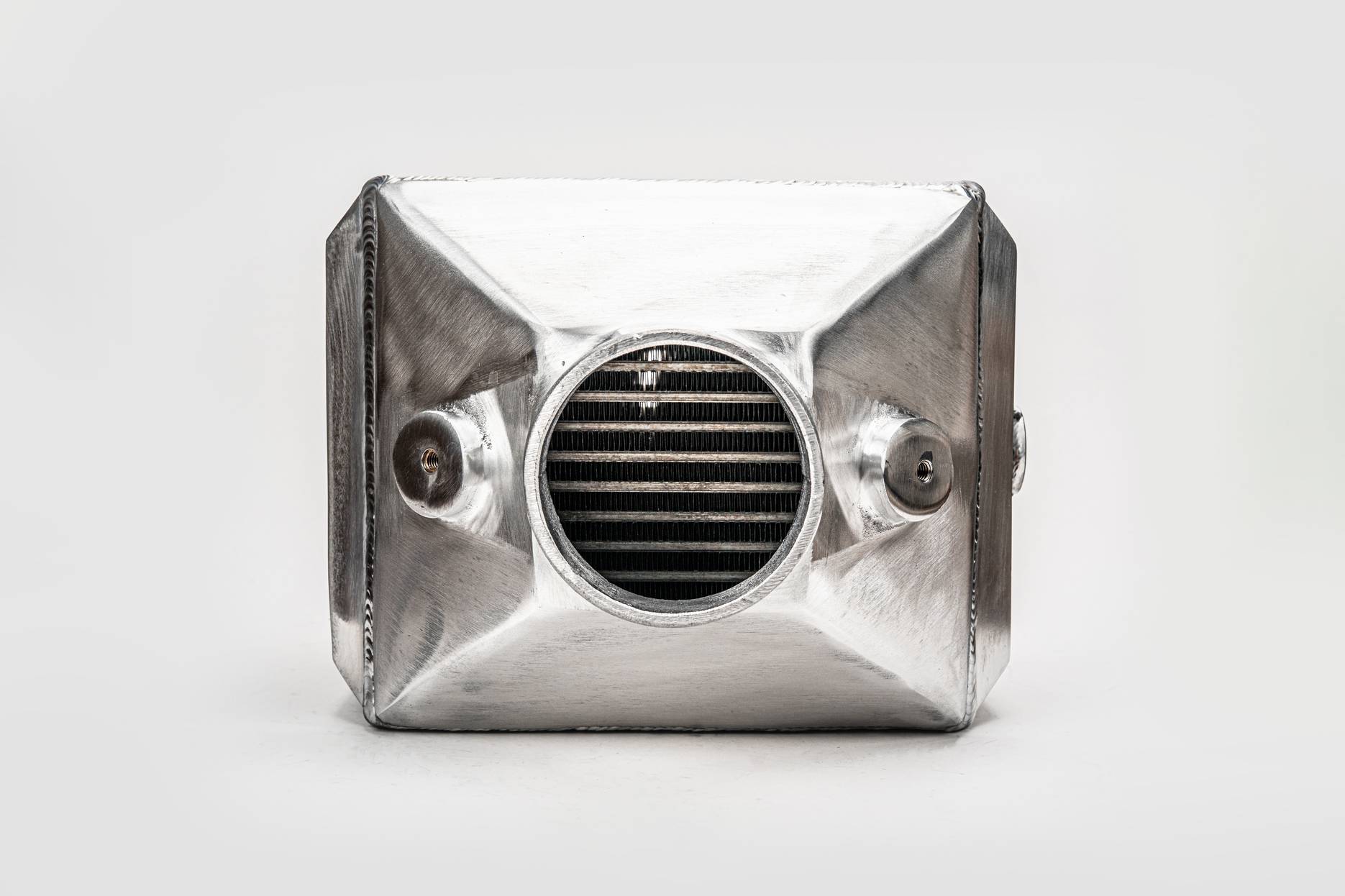 This is an enormous water to air intercooler. Special innovations in the core and end tanks allow it to operate at continuous pressure of up to 150 PSI.